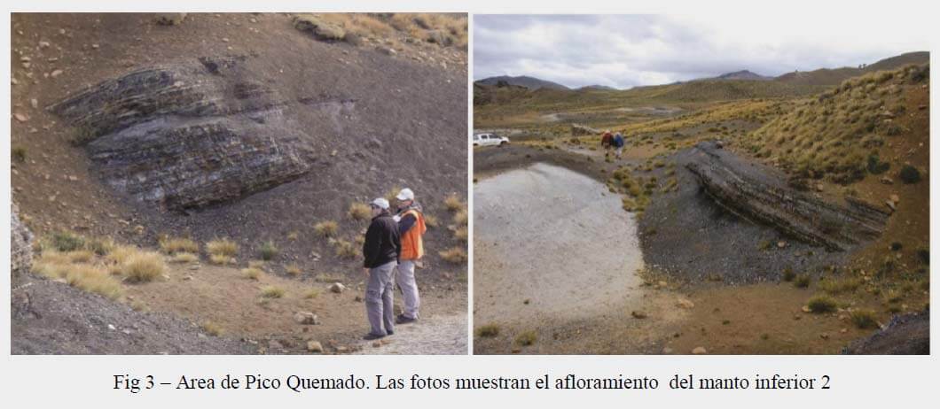 The Pico Quemado Zone is where the carbonaceous levels are better exposed, and therefore, where the greater effort was concentrated in the past. This zone includes an area of approximately 200 hectares, and the sediments that form it are folded forming a great synclinal, whose axis is dipping towards the SSE. Extensions of the originally defined Pico Quemado deposit were located to the south and north of the previously described deposit boundaries. Four coal seams have been detected, grouped in two sequences, separated by between 80 to 90 metres of sandstones and siltstones. The lower sequences (seams 1 and 2) displays a net coal thickness from 3.10 to 7.5 meters, whereas the upper sequences thickness (seams 3 and 4) is from 2.30 to 4 meters. The seams of the lower sequences is where the works were more concentrated in the past, mainly because its thickness and quality of the coal. The best seam intersections drilled in the current program were in holes PQ-021 (10.24 m), PQ-023 (6.96 m), PQ-026 (7.03 m), PQ-033 (9.00 m) and PQ-034 (5.60 m), all total in‐hole coal thicknesses. Drilling between Pico Quemado and Chenqueniyen located some good coal sequences, and confirmed the northerly extension into Chenqueniyen. Recently geological interpretation has widened the southern limit of the basin by about 2,500 meters, with the coal deposit open towards that direction. Therefore the next drilling plan should focus the exploration in this sector.